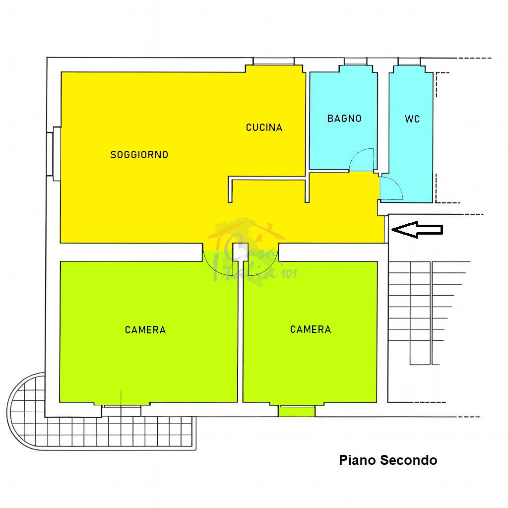 L’appartamento, in buone condizioni, si trova al secondo piano di una palazzina curata ed è così composto: